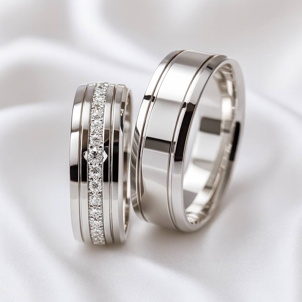 ALIANÇA DE PRATA 6,0MM QUADRADA C/15 PEDRAS DE 1,25MM E 2 FRISOS 0,50MM