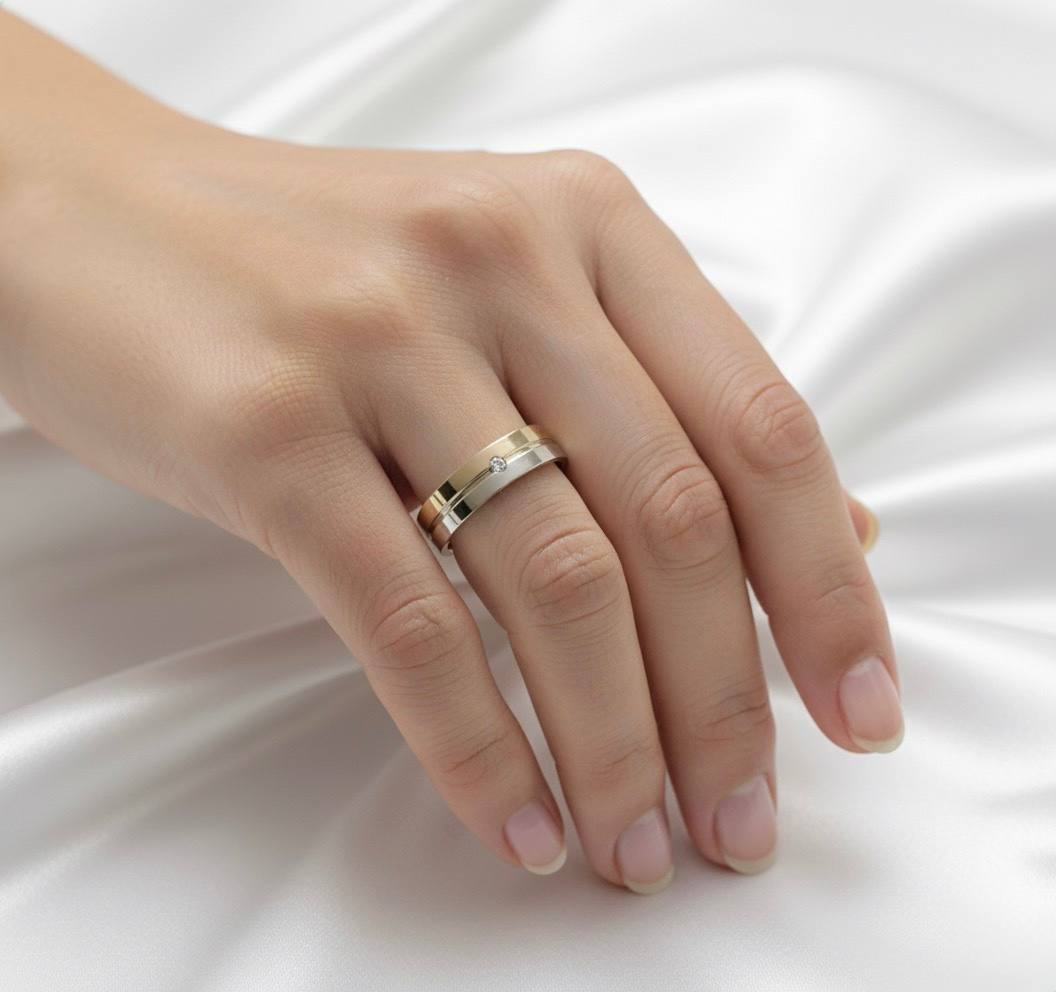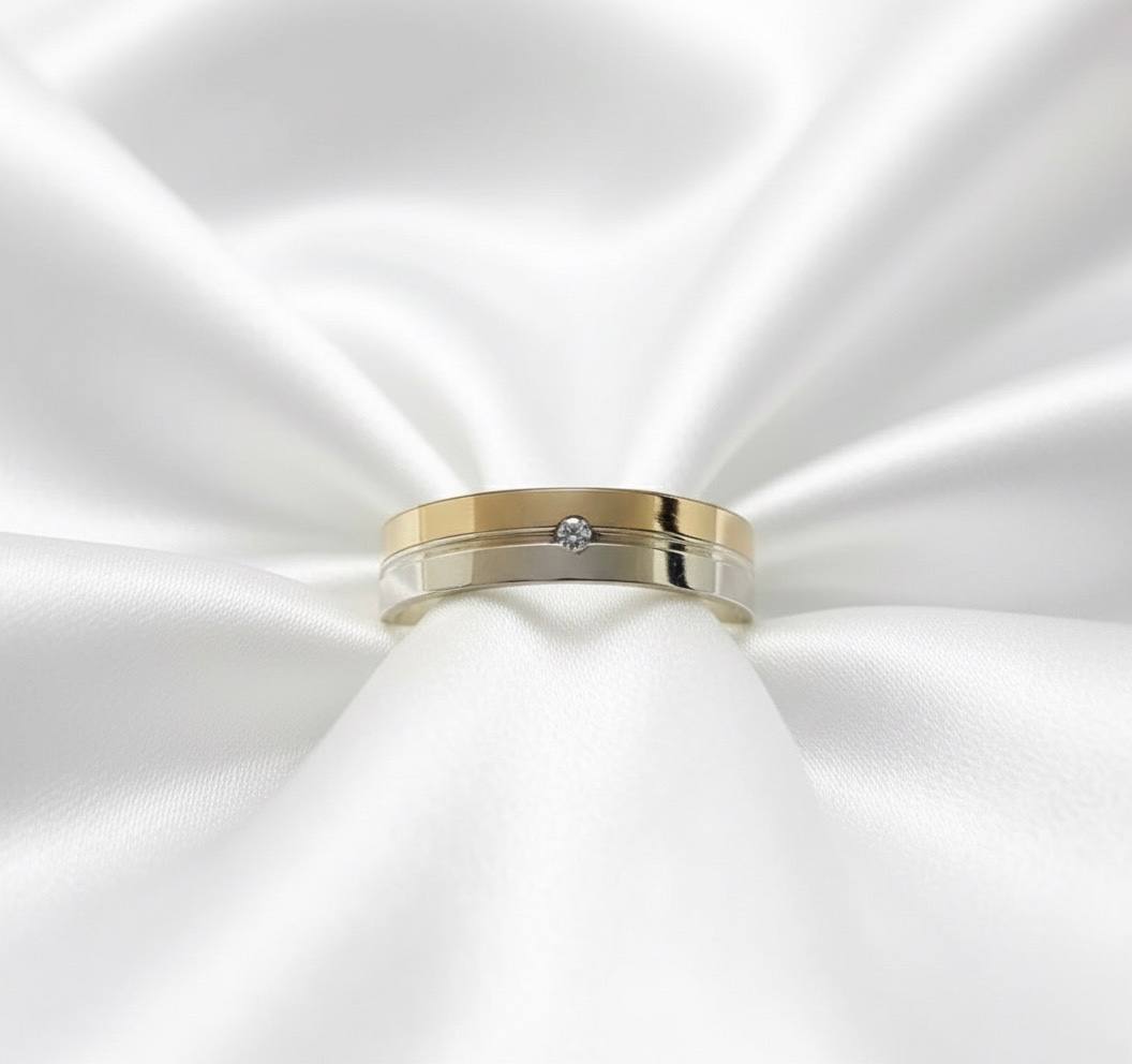 ALIANÇA DE PRATA COM CHAPA DE OURO 10K 5,0MM C/01 PEDRA