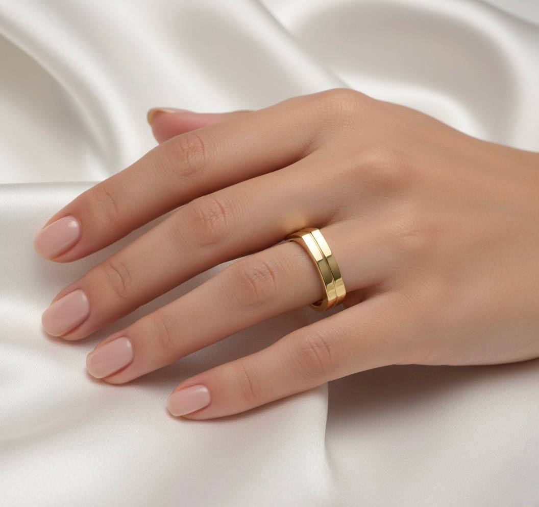 ALIANÇA LIGA DA MOEDA QUADRADA 5MM COM 1 FRISO