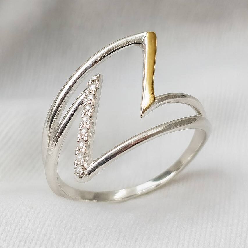 ANEL DE PRATA C/FILETE OURO 10KL C/9 PEDRAS