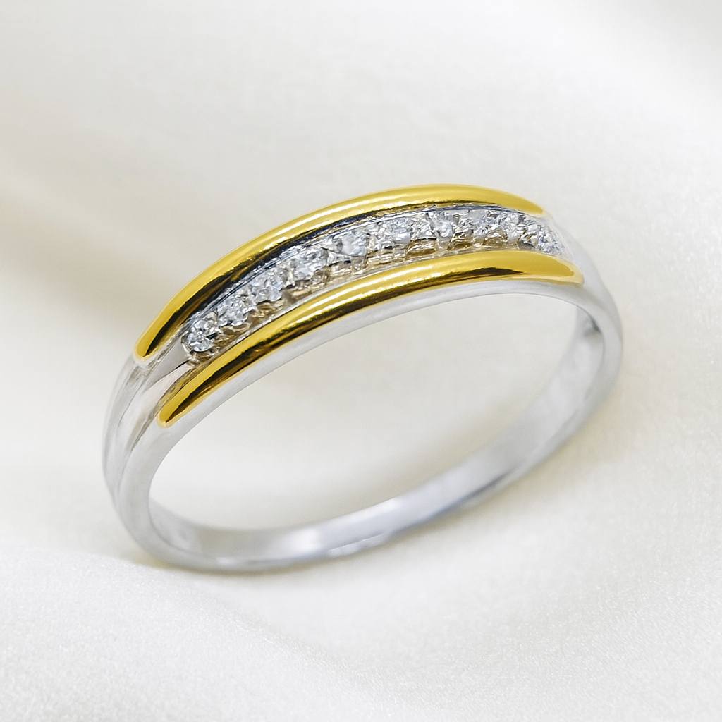 ANEL DE PRATA C/FILETE OURO 10KL E 11 PEDRAS