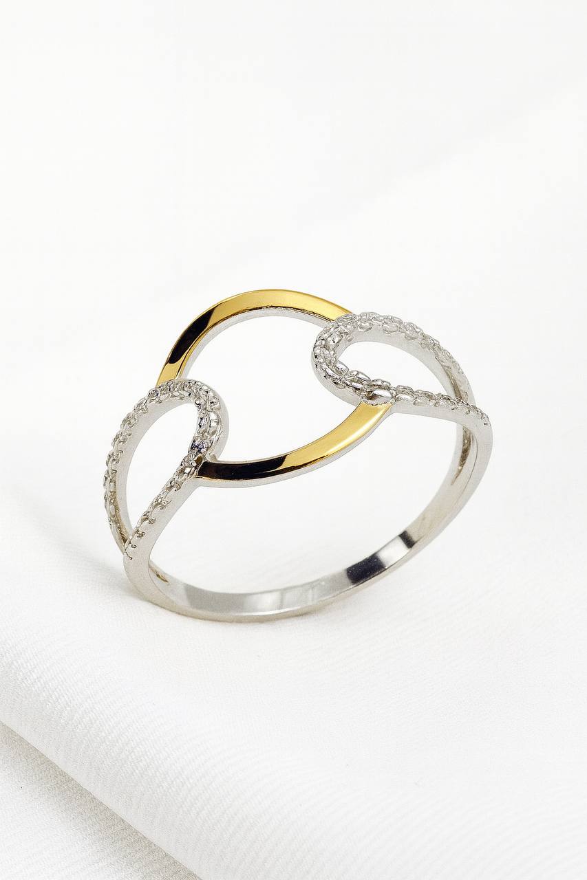 ANEL DE PRATA C/FILETE OURO 10K E 34 PEDRAS