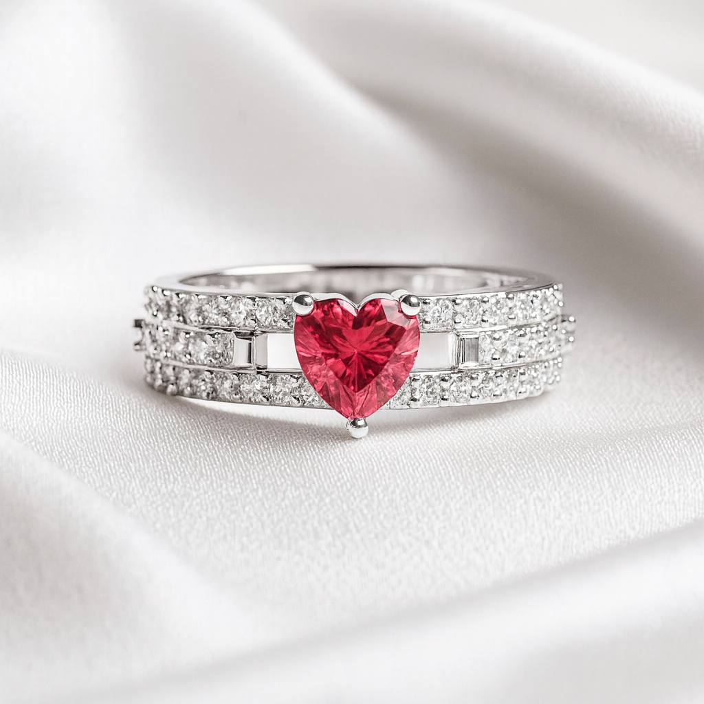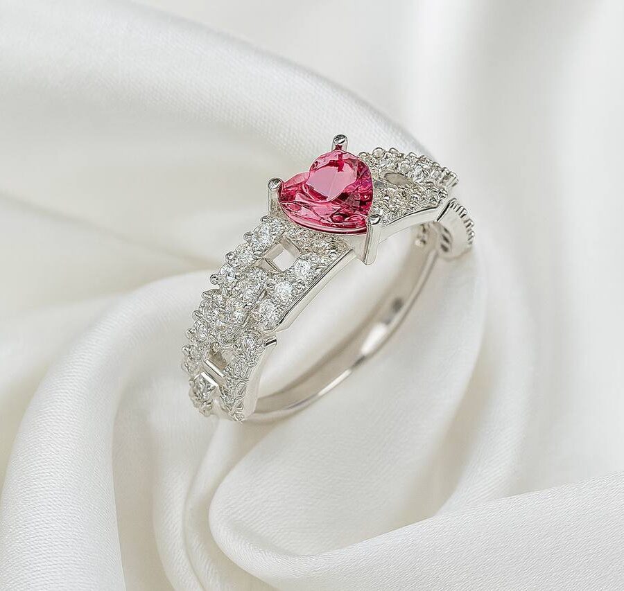 Anel Solitário Coração Luxo Cravejado.
